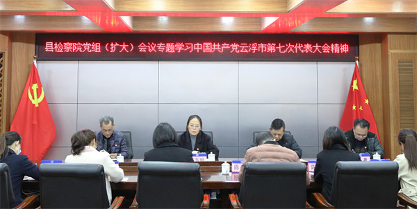 12月21日上午,新兴县人民检察院召开党组(扩大)会议专题学习中国共产党云浮市第七次代表大会精神,研究贯彻落实意见。院党组书记、检察长王妮娟主持会议,院班子成员,各部门主任、副主任参加会议。会议强调,要切实把思想和行动统一到中国共产党云浮市第七次代表大会的各项决策部署上来,在今后检察履职中,紧紧围绕市委赋予新兴融湾发展先行县的战略新定位,着力抓好服务平安新兴、护航企业发展、保障民生民利三件大事,以实际行动贯彻落实中国共产党云浮市第七次代表大会精神。具体做到:一要找准服务新兴融湾发展和奋进全国百强县两件大事的工作切入点,积极作为,主动服务。二要紧扣上级检察机关各项决策部署,将检察履职与服务地方经济社会高质量发展深度融合。三要创新理念与方法,扎实办好案件、讲好检察故事,通过履职办案,厚植检察机关司法为民基础,积极参与法治社会建设。