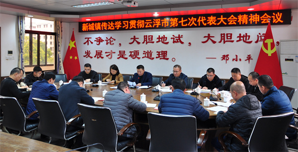 12月21日下午,新城镇召开班子会议,专题传达学习中共云浮市第七次代表大会精神,研究部署贯彻落实意见。会议强调,要围绕市第七次代表大会定下来的目标任务,切实把思想和行动统一到会议的各项决策部署上来,以更加饱满的激情、更加昂扬的斗志、更加强烈的担当、更加有力的举措、更加务实的作风,走好赶考路、迈向新征程,为推动云浮“打造粤北生态发展新高地、建设高质量发展的美丽云浮”努力奋斗。