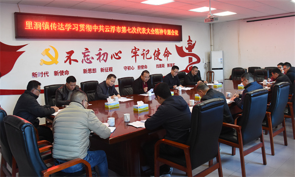 12月21日下午,里洞镇召开党委扩大会议,由镇委书记欧国华同志专题传达学习中共云浮市第七次代表大会精神,并结合里洞镇工作实际研究部署贯彻落实。镇在家班子参会。会议指出,要深入学习贯彻党代会精神,真抓实干,紧紧围绕“天露明珠 多彩里洞”的发展定位,以自然资源经济为抓手,着力推动里洞农旅融合发展,以高质量党建引领保障镇域经济高质量发展,为打造粤北生态发展新高地、建设高质量发展的美丽云浮做出里洞贡献。