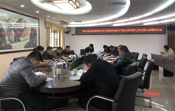 12月21日下午,新兴县天堂镇在镇政府三楼党委会议室召开传达学习贯彻中国共产党云浮市第七次代表大会精神会议,天堂镇在家班子参加会议。会议指出,这次大会是在我国全面建成小康社会、实现第一个百年奋斗目标之后,乘势而上开启全面建设社会主义现代化国家新征程、向第二个百年奋斗目标进军的重大历史关头召开的一次统一思想、凝聚共识、鼓舞斗志、砥砺奋进的大会,进一步引领全市上下树立必胜信心,继续保持定力、持续精准发力,凝心聚力谋事创业,为实现云浮高质量发展而不懈奋斗。