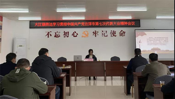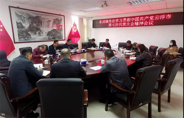 12月22日上午,新兴县东成镇在镇政府三楼党委会议室召开传达学习贯彻中国共产党云浮市第七次代表大会精神会议,东成镇在家班子参加会议。