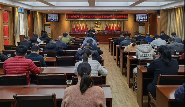 12月22日上午,水台镇在镇政府五楼会议室召开会议,传达学习贯彻中国共产党云浮市第七次代表大会精神。镇在家班子成员、中层干部、各村(社区)支书、副主任参加会议。