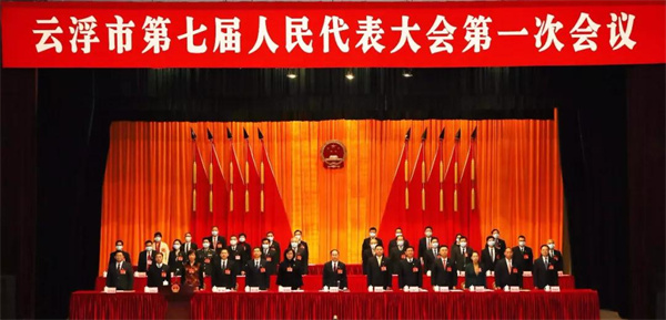 1月12日上午,云浮市第七届人民代表大会第一次会议在云城开幕。(记者 刘烁 摄)
