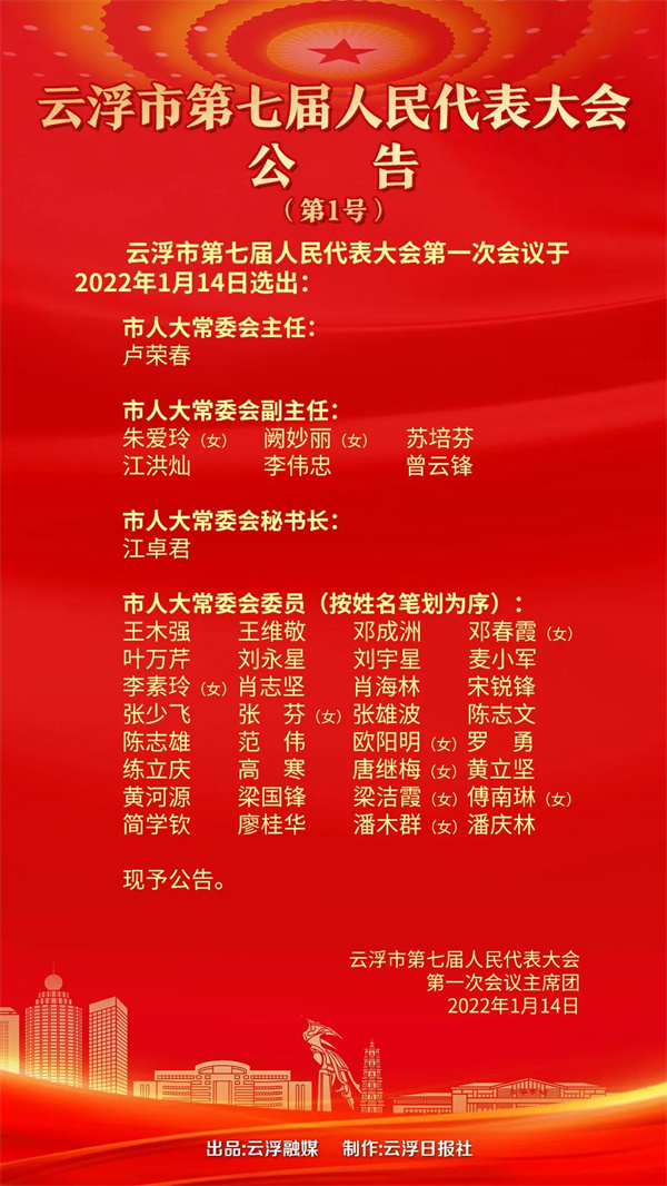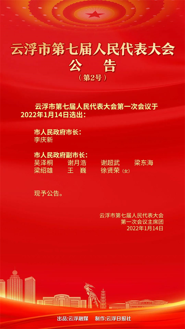 1月14日上午,云浮市第七届人民代表大会第一次会议圆满完成各项议程,在云浮影剧院胜利闭幕。