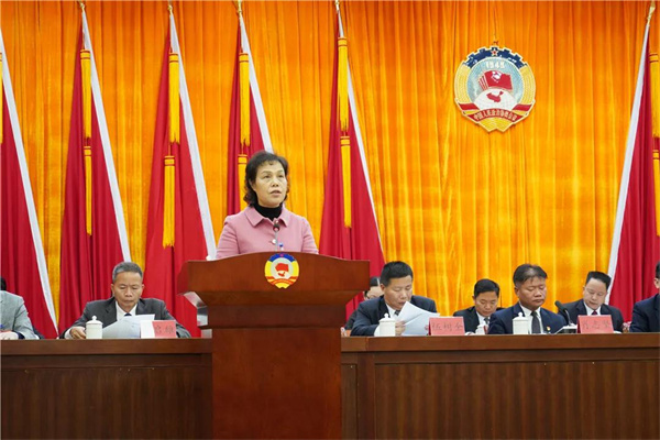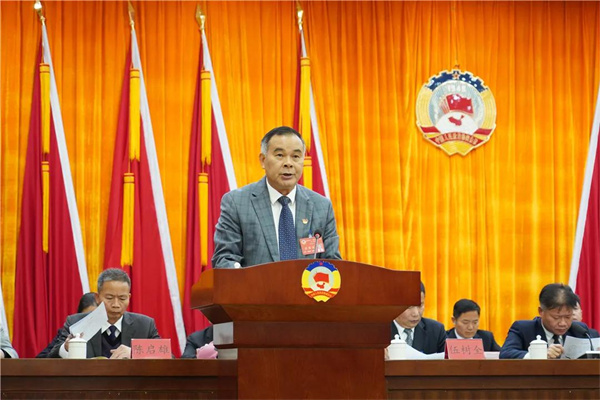 梁国华代表政协第十一届新兴县委员会常务委员会向大会作工作报告。2021年,县政协及其常委会坚持以习近平新时代中国特色社会主义思想为指导,在县委的正确领导及省、市政协的悉心指导下,加强思想政治引领,发挥专门协商机构作用,坚持建言资政和凝聚共识双向发力,政协工作呈现出团结奋进、提质增效、创新发展的良好局面,为新兴打造高质量发展的融湾先行示范县,奋进全国综合竞争力百强县贡献了智慧和力量。
