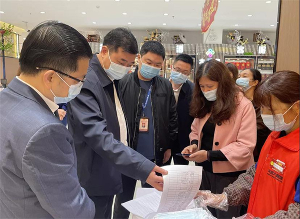 在大昌隆超市,陈哲江仔细查看商超方面是否严格落实扫码、测温措施,查看冷链食品溯源码、台账登记等落实情况。陈哲江强调,企业经营主体要在做好节日市场供应和稳定工作的同时,严格落实进门扫码、测温、戴口罩等防疫措施,确保疫情防控工作万无一失。要落实安全生产主体责任,全面排查整改各类安全隐患,要加强员工安全教育培训,提高食品安全意识,把好食品材料源头关,确保食品来源正规、渠道清楚、质量可靠。相关部门要高度重视人员密集场所的消防安全工作,进一步强化风险意识,压实工作责任,扎实做好各项安全防范措施,加强应急值守和排查管控力度,切实把各类安全隐患消除在萌芽状态,确保让人民群众度过一个平安祥和的新春佳节。