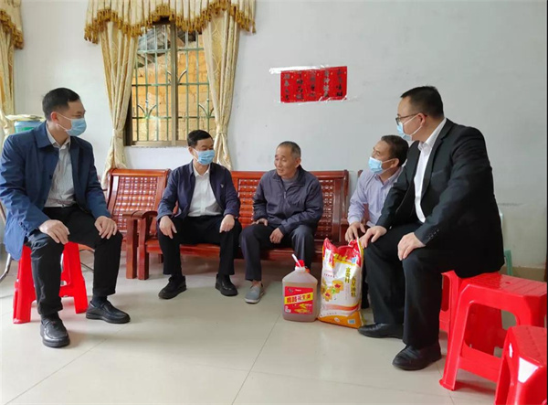 1月28日下午,云浮市委常委、政法委书记林少威率队到布马村督导疫情防控工作并走访慰问村中困难党员,为他们送去党和政府的关怀与温暖,并送上新春祝福。市委政法委常务副书记谢子超、副县长陈冠鸿以及县政法委、车岗镇相关负责人陪同走访。