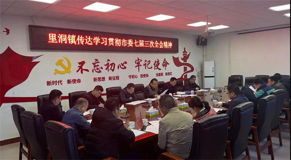 2月15日上午,里洞镇召开专题会议传达学习市委七届三次全会精神,并结合里洞镇工作实际研究部署贯彻落实。镇全体班子成员参会。