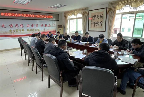 2月15日上午,水台镇召开班子会传达学习贯彻中共云浮市委七届三次全会精神,与会人员对水台镇贯彻落实意见进行研究。全体班子成员参加会议。