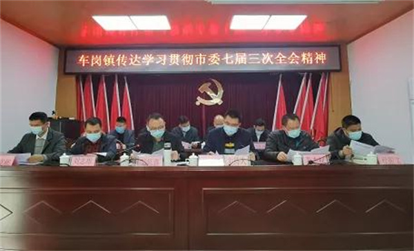 2月16日上午,车岗镇召开专题会议传达学习贯彻市委七届三次全会精神,镇全体干部职工、各村(居)支书、第一书记、圩镇单位负责人参加会议。