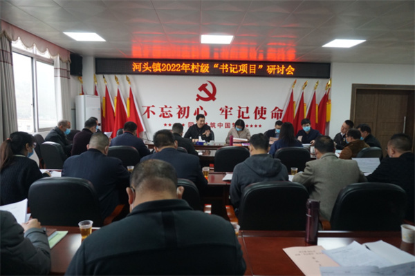 首先通报了河头镇2021年镇村两级“书记项目”所取得的成效。随后,各村(社区)支书围绕壮大村集体经济的目标,逐一汇报了2022年村级“书记项目”,与会人员分别针对各个项目提出了意见建议,会议气氛热烈。