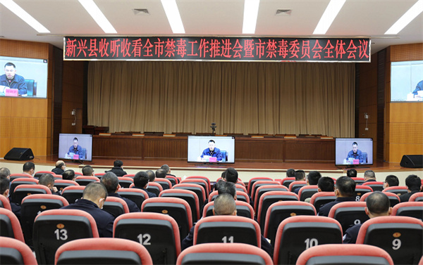 2月24日下午,云浮市禁毒工作推进会暨市禁毒委员会全体会议召开,深入学习贯彻习近平总书记关于禁毒工作的重要指示批示精神,全面落实党中央及省委、省政府决策部署,盘点分析形势、扭住关键重点、持续聚力加压,动员全市上下决战决胜罗定“摘帽降级”攻坚战,牵引带动我市全民禁毒工程纵深推进。云浮市委书记、市人大常委会主任卢荣春出席会议并讲话,市委副书记、市长李庆新主持会议。省禁毒办专职副主任郭泽辉到会指导。县委副书记、县长陈哲江在主会场参会并作表态发言。县政协副主席陈敏、汤健平以及有关单位负责人在我县分会场收听收看。