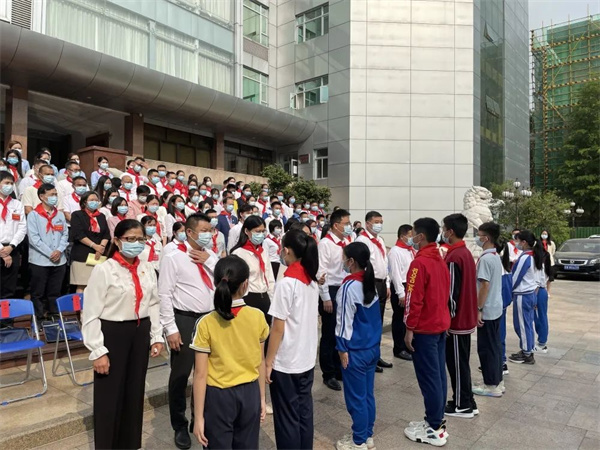 大会在庄严的国歌声中正式开幕,少先队员高举少先队队旗进入会场,鲜艳的红领巾飘扬在胸前。随后,少先队员代表向大会献词。