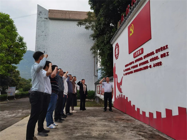 在六祖镇调研时,学员们怀着崇敬之情前往新兴县县委旧址——六祖镇新民小学,在鲜红的党旗前,庄严地举起右手,紧握拳头,铿锵有力地重温入党誓词。