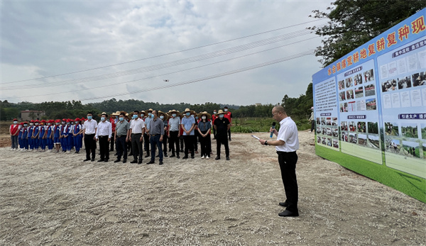 活动现场,伍树全要求全力做好撂荒耕地复耕复种工作:一要明确形势,切实增强做好春耕生产和撂荒地复耕复种工作的紧迫感和责任感,要深入学习贯彻习近平总书记重要讲话精神,认真贯彻落实省、市、县推进撂荒耕地复耕复种现场会精神,认清当前严峻形势,坚决扛起政治责任,高质量推进撂荒耕地复耕复种工作,遏制耕地“非农化”、防止“非粮化”,坚决守住耕地红线,确保粮食安全。二要明确目标,加大对仍未完成复耕复种、已清表未复种、复耕复种效果不好、未形成长效管理机制等存在问题的整改力度,一体推进各村撂荒地复耕复种工作。三要明确责任,强力推进农村耕地抛荒弃耕整治,进一步落实好粮食安全党政同责,深入推进撂荒耕地复耕复种工作,做到有力有序、取得实效。