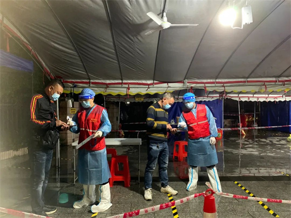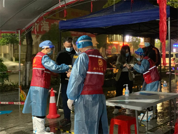 新兴志愿者们早早到各个便民核酸检测点