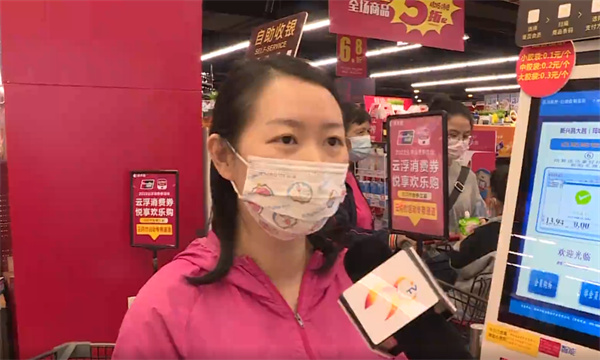 我抢到了几张消费券,趁着假期过来买一些日常用品,这些消费券可以提高市民出来消费的意愿。对我们来讲是一个实实在在的让利的行为,我觉得挺好的。这次用了100-20的券,还有几张留着下次用。