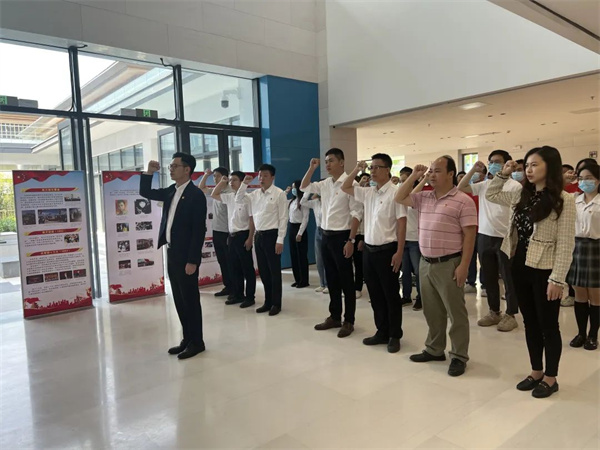 在党的青年运动史新兴县学习馆,李冠周带领团员青年重温入团誓词,并参观学习了党的青年运动史。大家边走、边听、边看,通过一幅幅资料照片感受峥嵘岁月里革命先烈的崇高理想信念和干事创业激情,引导青年了解党的光辉历史、感悟党的初心使命、传承党的红色基因,激发青年的学习和工作热情,爱国爱党意识进一步巩固,民族自信心和自豪感进一步增强,团员青年深受教育、深受感染、深受启发,表示要让青春在奋斗中绽放光彩。