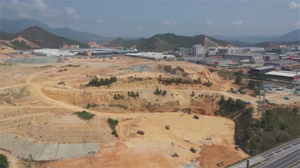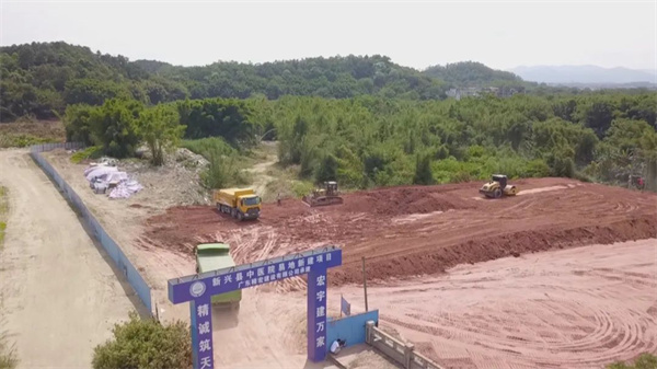新兴县新成工业园东园东成片区基础设施建设工程二期现正在进行推填土施工以及排水、道路等基础工程施工。