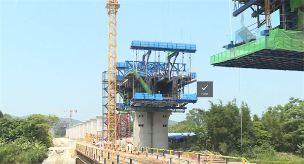 在新兴县六祖镇含桃村广湛高铁新兴段项目建设施工现场,工人们正在各自工作岗位上紧张而有序地忙碌着,数台工程机械轮番作业,一派热火朝天的景象中铁十二局新兴制梁场已于4月份顺利浇筑首孔预制梁,5月份将提梁放入存梁区进行养护,为下一步工作作准备。目前,施工方正抢抓晴好天气,扎实推进含桃村特大桥5号、6号墩连续梁的施工。