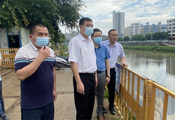 陈哲江一行首先来到文昌桥项目施工现场,现场查看工程进度和大南河水情。陈哲江要求,在建工程要加强施工现场监管,雷雨大风期间一律停止户外塔吊、高空吊篮等作业,防止人员滞留;要确保值班值守到位,及时发现隐患,及时排险除险,严防各类灾害和次生灾害发生。同时,要密切监测天气变化,加强汛情分析研判,及时清理河道杂物,提高河道的防洪和泄洪能力,确保汛期安全。