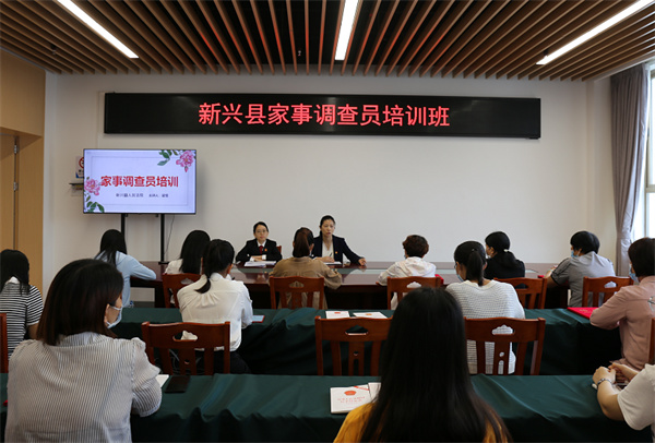 新兴县家事纠纷预防化解工作室由妇联干部、心理咨询师、律师等人员组成工作室调解员、家事调查员队伍,借助专业力量及时为当事人提供法律咨询、心理疏导、家事调解、案后回访帮扶、家事调查等服务。