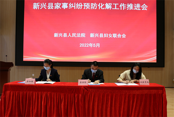 为切实推进诉讼调解与妇联调解相衔接,及时、高效、妥善处理家事纠纷,推进家事纠纷多元化解机制建设,5月13日,新兴县法院和县妇联联合召开家事纠纷预防化解工作推进会,并揭牌成立新兴县家事纠纷预防化解工作室。
