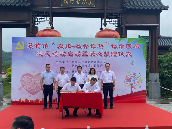 仪式上,簕竹镇人民政府分别与县人民医院、新兴中药学校签订《结对帮扶协议书》;举行了热心乡贤、企业献爱心捐赠仪式并颁发纪念证书。