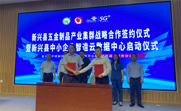 5月17日下午,新兴县五金制品产业集群战略合作签约暨新兴县中小企业智造云数据中心启动仪式举行,全面推动五金制品产业技术和模式的创新发展,打造具有国际影响力的品牌集群。市、县工业信息化局,县不锈钢商会、县创新中心、中国联通云浮市分公司、中国联通新兴县分公司等有关负责人参加活动。