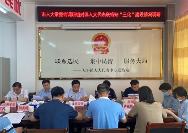 调研组先后来到水台镇人大代表中心联络站、水台镇第四片区(布冷村委)人大代表联络站、太平镇第四片区(悦塘村委)人大代表联络站、太平镇人大代表中心联络站等地,通过实地察看、查阅资料、现场交流等方式,详细了解代表联络站人员配备、日常管理、活动开展等情况。