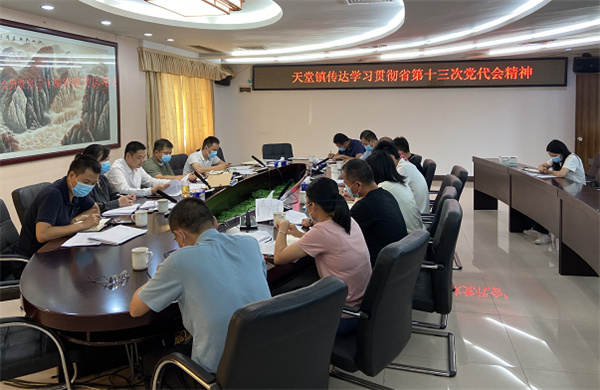 5月26日,天堂镇召开班子会议,会上传达学习贯彻省第十三次党代会精神。