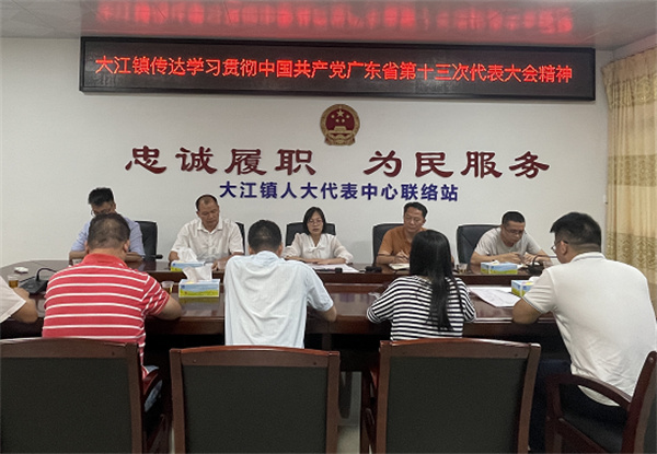 5月26日,大江镇召开专题会议传达学习贯彻中国共产党广东省第十三次代表大会精神。会议传达了省委书记李希《忠诚拥护“两个确立”坚决做到“两个维护” 奋力在全面建设社会主义现代化国家新征程中走在全国前列创造新的辉煌》报告精神,并强调要把学习贯彻省第十三次党代会精神作为当前和今后一个时期的重大政治任务。