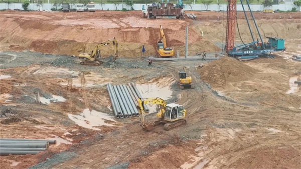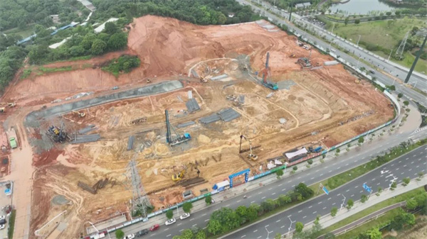 进入施工场地可以看到,现场一派热火朝天的景象,偌大的工地上,数十台机械同时紧张作业,60多名工人佩戴安全帽抢进度、忙施工。据施工方介绍, 今年项目计划投资2亿元,主要开展部分主体工程建设,现正进行土方开挖、桩施工、灌注桩等工作,预计10月初完成第一幢(1栋)主体建筑结构封顶,11月中旬完成全部主体建筑结构封顶,明年9月竣工。