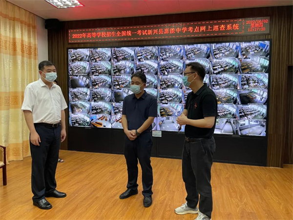 陈哲江先后来到黄冈中学新兴学校考点、惠能中学考点、新兴一中考点,详细了解各考点考场视频监控、试卷安全保密、疫情防控措施落实等情况。