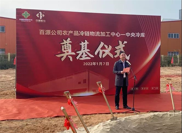 陈冠鸿代表县委、县政府对县供销社百源公司中央冷库项目的启动表示热烈祝贺。他指出,中央冷库项目的启动,是我县供销社构建现代农产品流通全产业链模式的关键一环,在现有流通服务基础上,发挥冷链物流对高品质农产品生产、流通、减损的支撑保障作用,全面提升产前、产中、产后经营服务能力,是创新发展,深化综合改革,推进生产、供销、信用“三位一体”综合合作的重要举措,将有效填补我县在冷链物流方面的关键短板,大大提升新兴高质量融湾发展的基础支撑力和综合竞争力,为新兴打造全市先行示范的融湾“六地”,特别是打造农副产品“安全供给地”和湾区物流“高效配送地”注入新的强大动能。希望县供销社以奠基仪式为契机,加快建立畅通高效安全绿色、智慧便捷、保障有力的现代冷链物流体系,为减少农产品产后损失和食品流通浪费,扩大高品质市场供给,更好满足人民日益增长美好生活需要提供保障,为农业规模化产业化发展,促进农业转型和农民增收提供有力支撑。加快对接全省供销“一张网”,补齐“最先一公里”冷链物流短板,优化产地冷藏保鲜设施建设,建立产地冷链物流服务体系,健全要素支撑保障体系,带动小农户与现代农业有机衔接,推动农产品“出村进城”、“进湾区”,促进县域、镇域经济发展,服务乡村振兴战略。