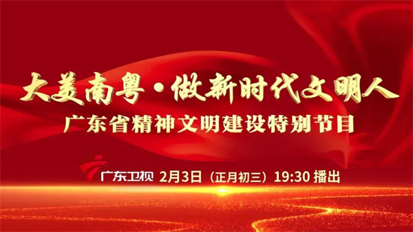 凝心聚力,构筑时代精神;倡导文明,让生活更加美好。“大美南粤·做新时代文明人”广东省精神文明建设特别节目(以下简称“特别节目”)将于2月3日(大年初三)19:30在广东卫视播出。