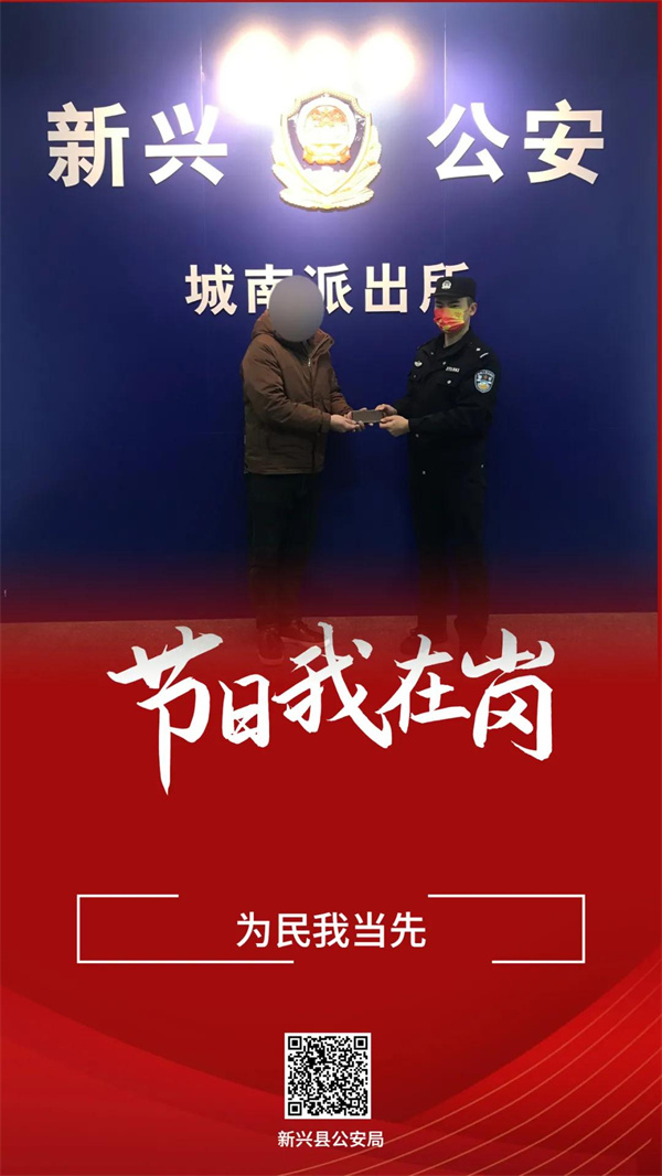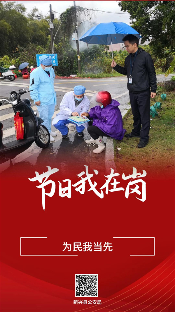 2月1日大年初一早上,新兴县局治安大队民警卓海云在途经新洲大道北时,发现车道上横躺着一位老人和一辆电动车,于是立即上前将老人扶至路边安全地带。在寒风冷雨中老人出现呕吐现象,情况紧急,卓海云一边询问老人情况让其保持清醒,一边联系110报警台通知120救助,同时撑起伞为老人挡雨,直至医护人员到场。在协同处理后,才匆匆回到工作岗位值守。
