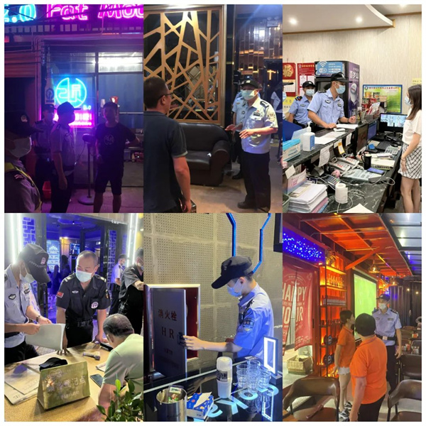为促进县城区域扎实推进夏夜治安巡查宣防集中统一行动,治安大队组织警力会同县文广旅体局、新城派出所、城南派出所及巡警大队对县城辖区内的旅馆业、酒吧、沐足场所、网吧、烧烤档及桌球馆等进行清查,总计清查旅馆业5间、沐足场所7间、酒吧8间、烧烤档4间、麻将档5间、网吧2间、桌球馆1间,核查可疑人员9人。