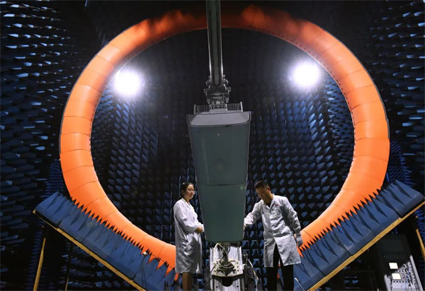 工程师在位于广东省东莞市松山湖的华为实验室测试5G基站设备(2020年7月3日摄)。新华社记者 刘大伟 摄