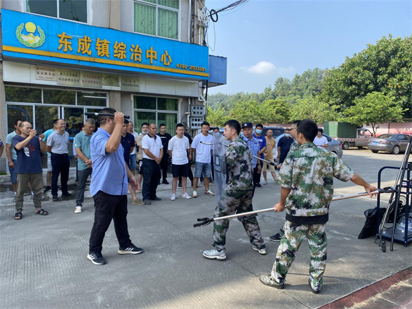 8月31日,东成镇在政府大院及东成中学内进行了一系列的防恐应急处突技能培训和实战演练。镇党委副书记叶峰、东成派出所干警、镇综治办、应急办工作人员、各村(社区)干部代表、部分企业和圩镇单位安保负责人共30多人参加了培训。