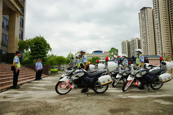 为进一步改善基层一线警用装备,提高一线民警应急处突、快速反应、快速处置、巡逻管控能力,2022年8月9日下午,新兴县公安局举行警用摩托新车配发仪式暨“百日行动”大巡游活动。