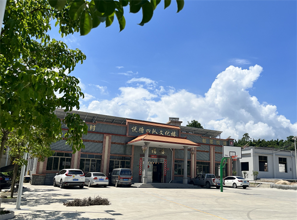 在太平镇悦塘村四队文化楼楼顶,一排排蓝色的光伏发电板让人眼前一亮,在艳阳的照耀下,悦塘村显得光彩熠熠。