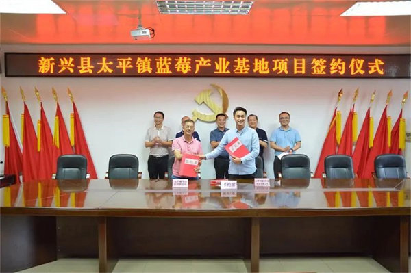 在今年5月新兴县太平镇蓝莓产业基地项目签约仪式上,太平镇马山经济联合社与云浮市灏岚农业科技有限公司签订合同,标志着云浮市第一个高效设施蓝莓种植项目成功落户太平镇。太平镇马山社区的蓝莓产业基地项目是现代农业大棚基地种植的高效智慧数字农业,项目首期投资约3000万元,项目建成后预计每年产值约4000万元,将大幅增加地方财税收入,壮大镇域经济。