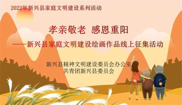 为贯彻落实习近平总书记关于“注重家庭、注重家教、注重家风”的重要指示精神,为丰富广大家庭节日文化生活,弘扬中华民族传统美德,传承中华优秀传统文化,树立孝亲敬老好家风,营造敬老、爱老、助老的的家庭氛围,促进家庭文明建设,团新兴县委联合县文明办在“重阳”佳节来临之际,开展“孝亲敬老 感恩重阳 ”家庭文明建设绘画作品线上征集活动,期待您的参与!