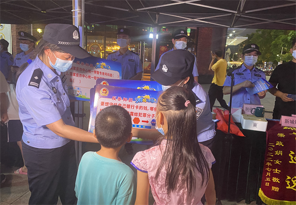 为深入推进新兴县公安机关夏季治安打击整治“百日行动”,充分展示行动开展以来的各项成绩战果,进一步营造和谐稳定的社会治安环境,切实提升人民群众安全感、幸福感和满意度,8月18日晚,县公安局在凤凰广场举办“‘百日行动’齐参与 警民携手创平安”主题宣传活动,与群众进行亲密互动,宣传各类防范知识及国家安全知识,倡导市民共同维护社会治安稳定。