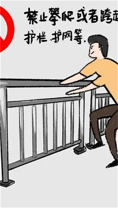 第六十三条规定:行人不得跨越、倚坐道路隔离设施,不得扒车、强行拦车或者实施妨碍道路交通安全的其他行为。