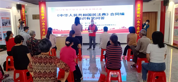 以公平正义为追求、以法律规范为基准。以“法律进社区”为载体,大力弘扬法治文化。“通过今日的知识问答,使我了解到《民法典》合同编的新规则和新变化,让我学会了如何通过正当、合法途径维护自身的权益。”