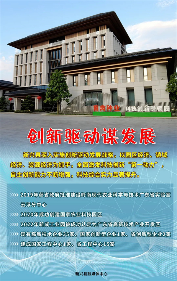 近年来,新兴县深入实施创新驱动发展战略,在战略科技力量建设、关键核心技术攻关、区域创新能力建设、科技创新生态构建、科技人才队伍建设、创新成果转化产出等科技创新各领域工作上,取得了许多新突破、新成效,自主创新能力不断增强,科技综合实力显著提升,为新兴县全力打造高质量融湾先行示范县、奋进全国百强县提供了坚强的科技支撑。