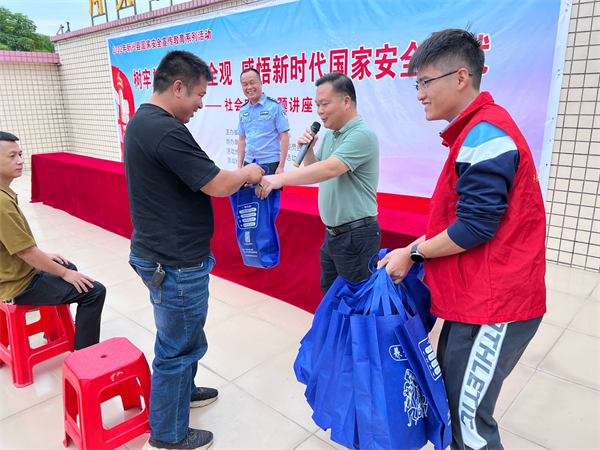 活动现场,河头派出所所长甘志明紧紧围绕“树立总体国家安全观,感悟新时代国家安全成就”这一主题,分别从何为国家安全、当前国际国内形势、危害国家安全的行为、如何维护国家安全、谁来保卫国家安全、宗教邪教渗透以及间谍活动等敏感问题为切入点。社会安全是包括恐怖袭击事件,民族宗教事件,经济安全事件,涉外突发事件和群体性事件等。深入浅出分析国内外安全形势、讲解案例,切实提高居民们国家安全意识,增强国家安全责任,形成维护国家安全的意识,让我们从身边小事做起,积极维护国家安全,并进行了有奖知识问答。