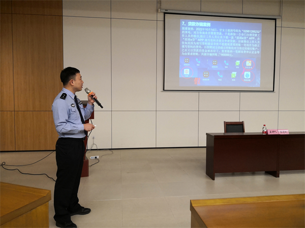 为进一步提高高校学生预防电信网络诈骗意识,有效预防和减少各类电信网络诈骗案件的发生,切实保护高校学生的财产安全,有效遏制电信网络诈骗频发、高发势头。11月1日晚上,新兴县公安局在广东云浮中医药职业学院举办以“铸就防骗长城 擦亮识骗慧眼”为主题的预防电信网络诈骗知识讲座,170余名学生聆听了宣讲。该活动由新兴县公安局刑侦大队二中队中队长余清斌主讲。